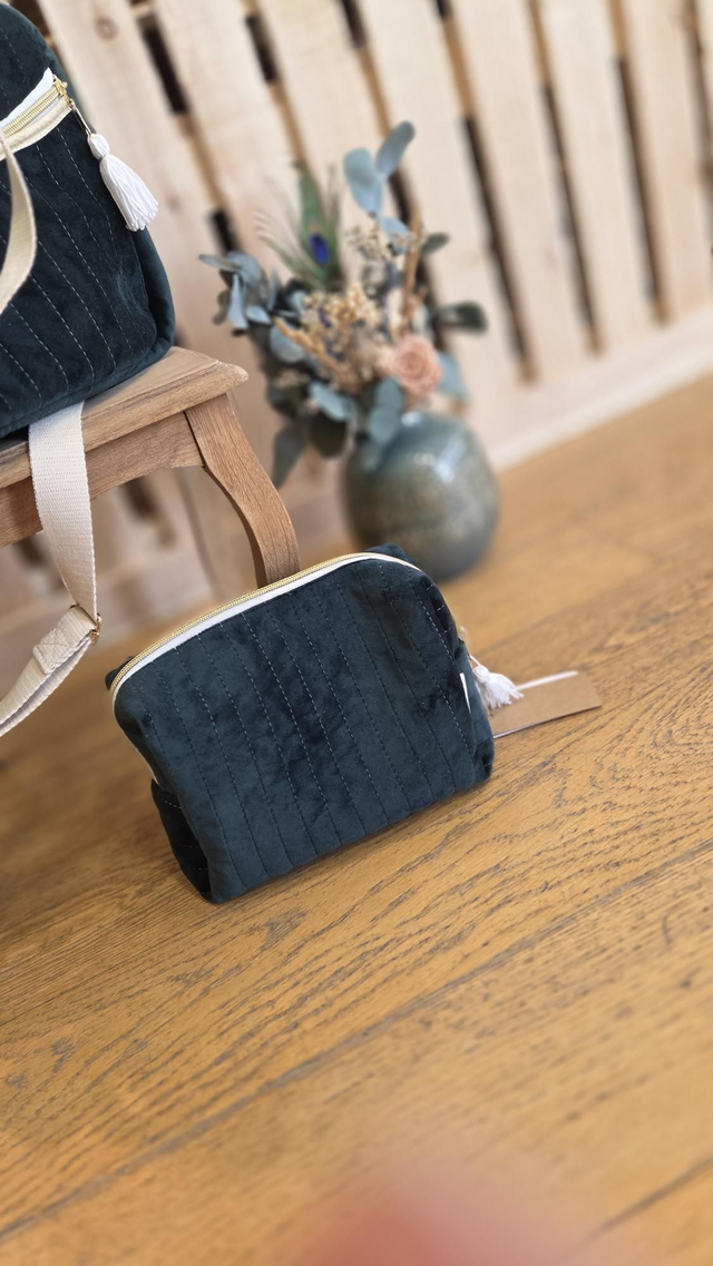 ✨ Ensemble sac à langer & trousse de toilette en velours vert sapin ✨